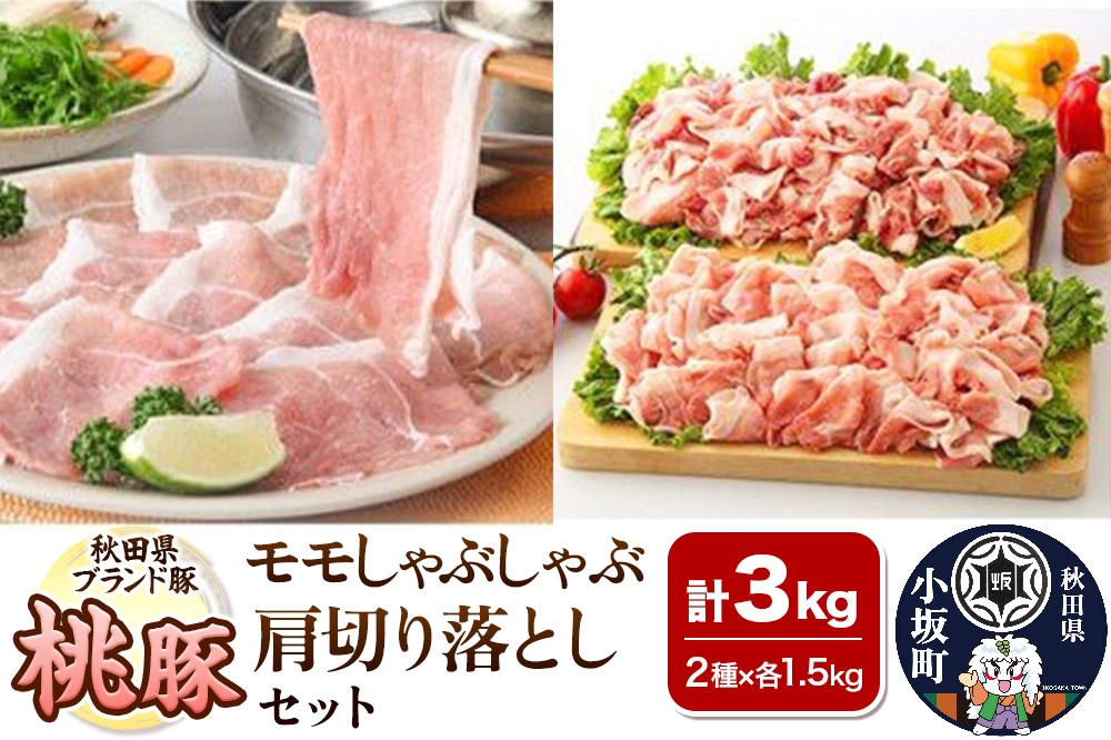 秋田ブランド豚肉!飼料用米で育った、あっさりして柔らかい小坂町産「桃豚」! 桃豚モモしゃぶしゃぶ&肩切り落としセット 各1.5kg 計3kg 豚肉 秋田県 小坂町
