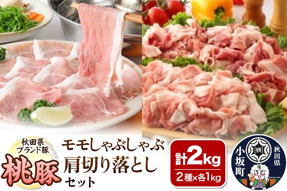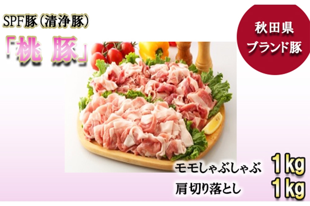 秋田ブランド豚肉!飼料用米で育った、あっさりして柔らかい小坂町産「桃豚」! 桃豚モモしゃぶしゃぶ&肩切り落としセット 各1kg 計2kg 豚肉 秋田県 小坂町