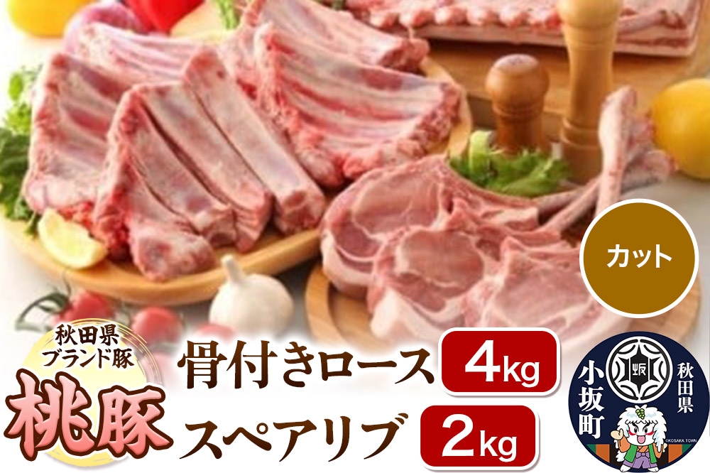 秋田ブランド豚肉!飼料用米で育った、あっさりして柔らかい小坂町産「桃豚」! 桃豚 骨付きロース 4kg&スペアリブ 2kg セット【カット】豚肉 秋田県 小坂町