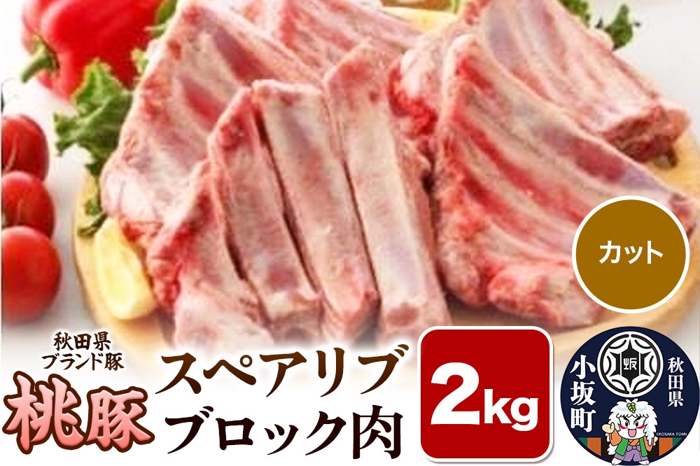 秋田ブランド豚肉!飼料用米で育った、あっさりして柔らかい小坂町産「桃豚」! 桃豚スペアリブ 2kg【カット】豚肉 秋田県 小坂町