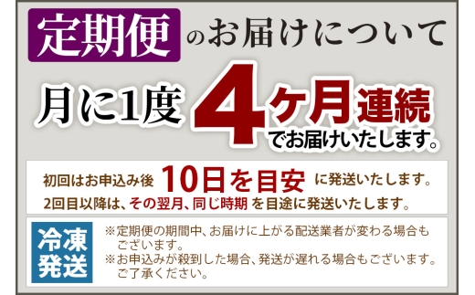 【定期便】全4回。 初回は10日を目安に発送(休業日除く) ※定期便期間中に運送会社が変更になる場合がございます。 ■定期便について ---- 初回は、ページ記載の配送時期通りに発送します。 2回目以降は、その翌月、同じ時期を目途に発送いたします。 例) 初回発送が10月上旬の場合 2回目の発送は11月上旬 3回目の発送は12月上旬 |