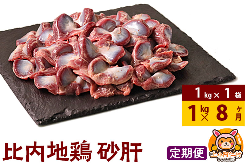歯ごたえ、風味は別格!日本三大美味鶏の比内地鶏 【定期便8ヶ月】比内地鶏 砂肝 1kg(1kg×1袋) 1kg 国産 冷凍 鶏肉 鳥肉 とり肉 すなぎも