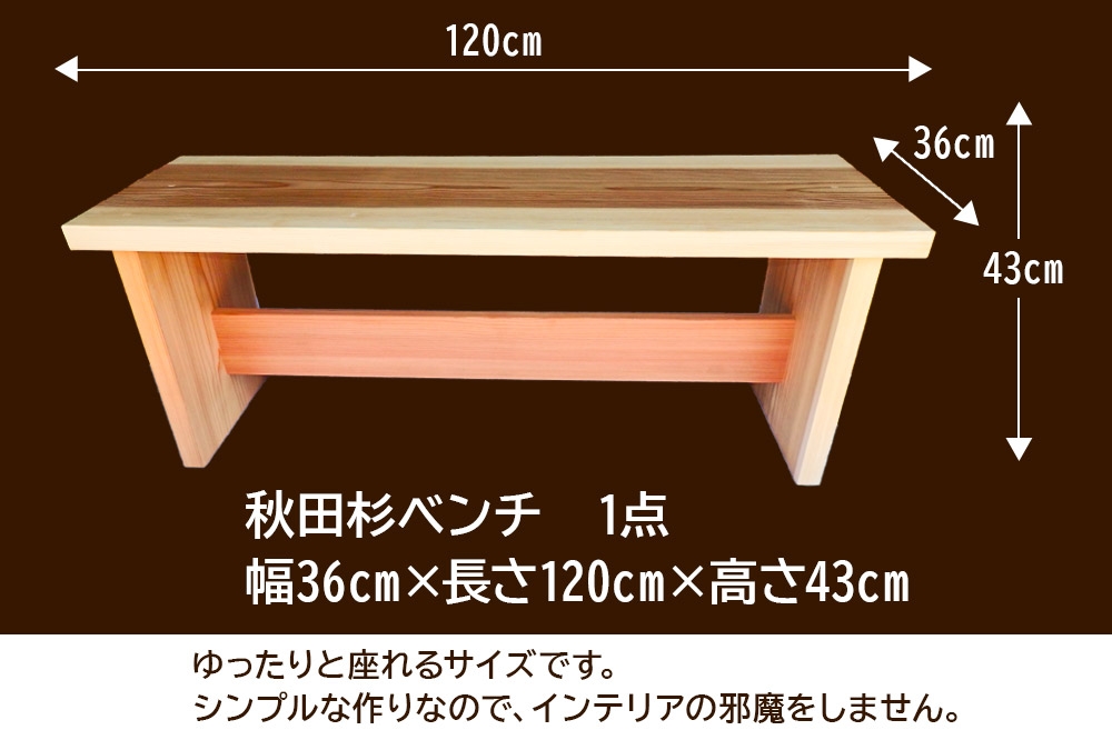 職人手作り 秋田杉ベンチ(長さ120cm)