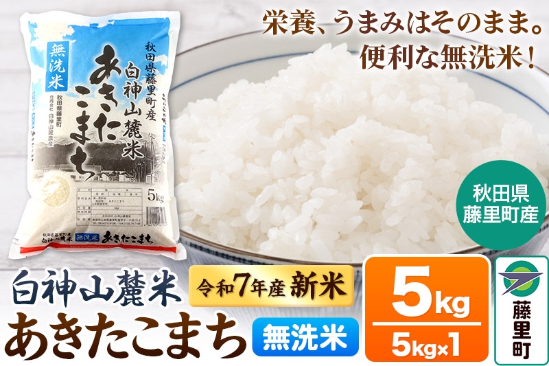 人気の5kgの小袋.和食にぴったり。王道の「あきたこまち」 米 令和7年産 新米 白神山麓米 あきたこまち 無洗米 5kg (5kg×1袋) 秋田県産
