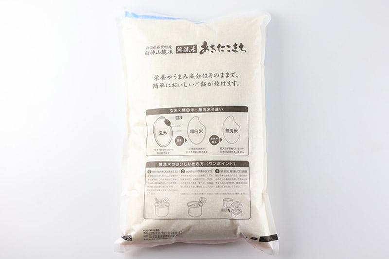 世界自然遺産『白神山地』山麓の、豊富な伏流水を恵みとして育んだ「無洗米 白神山麓米」(あきたこまち)は食味、風味に定評がある逸品です。