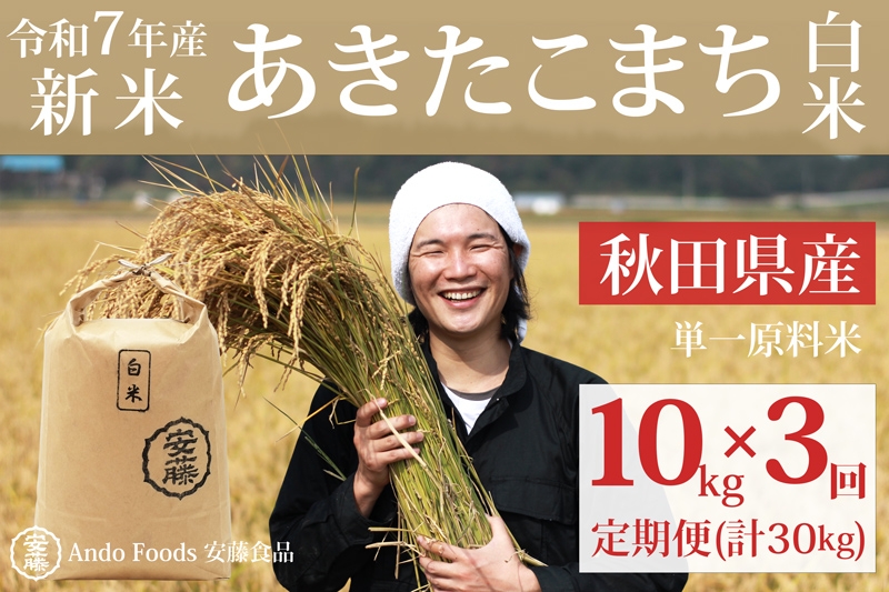 《令和7年産 新米》《定期便3ヶ月》秋田県産 あきたこまち 10kg(10kg×1袋)×3回【白米】計30kg 令和7年産