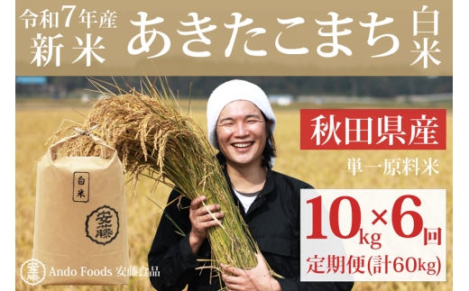 《令和7年産 新米》《定期便6ヶ月》秋田県産 あきたこまち 10kg(10kg×1袋)×6回【白米】計60kg 令和7年産