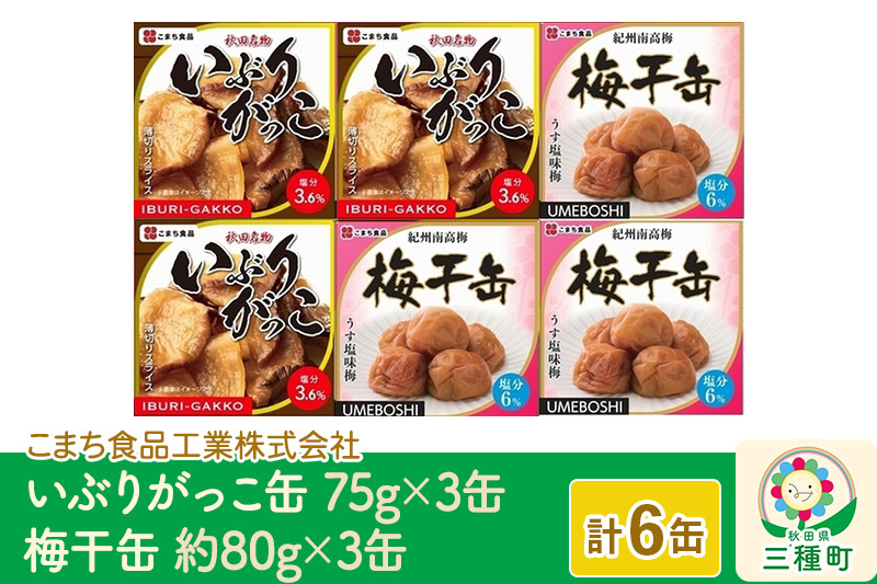 イブリガッコ 漬物 漬け物 紀州南高梅 A級品 缶詰 いぶりがっこ缶・梅干缶(紀州南高梅) 6缶セット(各3缶)