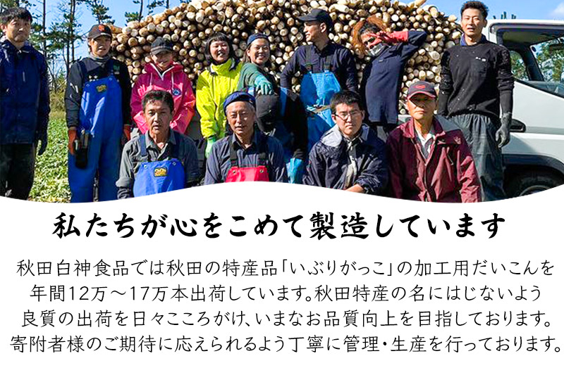 秋田名物のいぶりがっこを食べやすい大きさに乱切りカットし、特製の鰹節風タレで味付けしました。