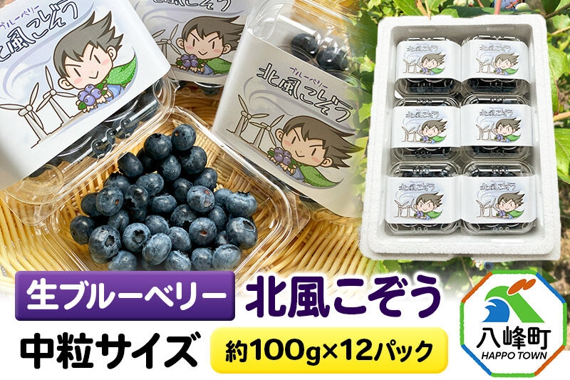 旬のジューシーなブルーベリーを秋田からお届けいたします! 【2026年収穫先行受付】生ブルーベリー(中粒)「北風こぞう」 約100g×12パック [ブルーベリー 北風こぞう 生 中粒 先行予約 国産]