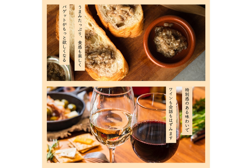 椎茸タプナード/八峰町にて生産された椎茸を使用している
