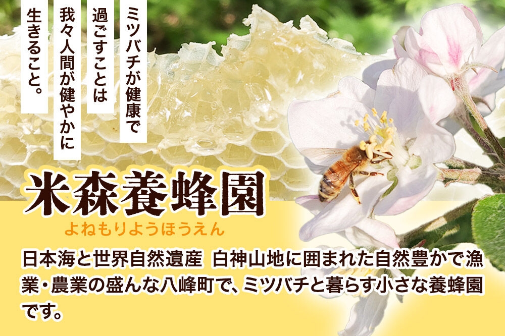 こんにちは『米森養蜂園』です。 日本海と世界自然遺産 白神山地に囲まれた、自然豊かな八峰町で、ミツバチと暮らす小さな養蜂園です。