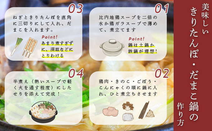 「だまこ」とはご飯をつぶしてピンポン玉状に丸めた焼いていないもちで、きりたんぽの元祖とも言われております。きりたんぽとはまた違った味わいがあります。契約栽培による厳選されたあきたこまちで作られる、手づくりのきりたんぽとだまこは、杵つきならではの洗練されたしなやかな食感と格別な風味をお楽しみいただけます。野菜はきれいに洗い、笹がき、斜め切り等に切りそろえておりますので、そのままお召し上がり下さい。秋田が全国に誇れる素晴らしい香味野菜のせり、ケージ飼いの2倍の日数を掛けて放し飼いした比内地鶏など、秋田の農家のプライドと心意気を感じてもらえたら幸いです。