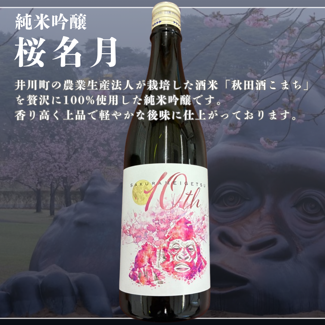 このゴリ山、町内外問わず大変人気な作品で、そのコラボ製品となります。一般には販売していないゴリ山ラベルの桜名月をお届けします。
