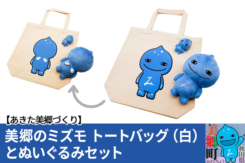 美郷のミズモ 妖精 ゆるキャラ ご当地 キャラクター 美郷のミズモ トートバッグ(白)・ぬいぐるみセット