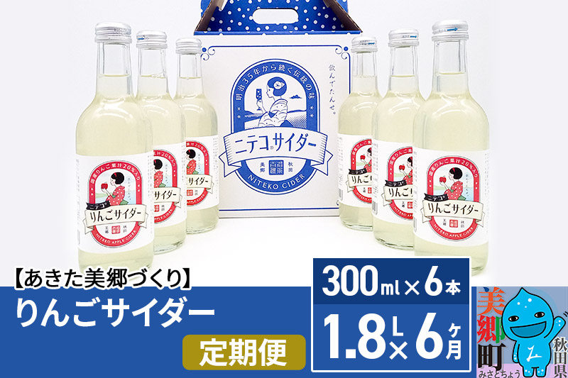 ニテコサイダー 林檎 リンゴ ご当地 サイダー 定期便 毎月お届け 《定期便6ヶ月》りんごサイダー 300ml×6本セット あきた美郷づくり