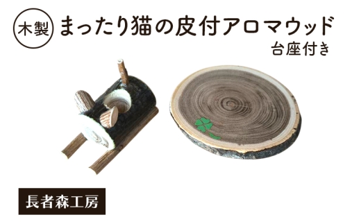 NEW 木製 まったり猫の皮付アロマウッド 台座付き [長者森工房] …