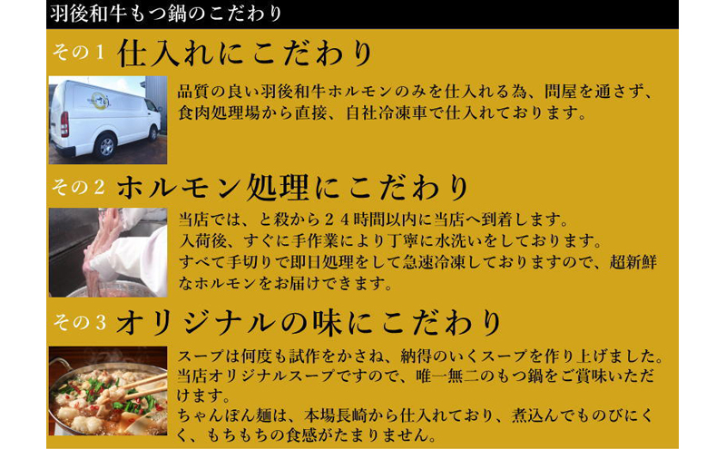 と殺後、24時間以内に処理をしている羽後和牛の超新鮮なホルモンのみを使用したもつ鍋セットです。
