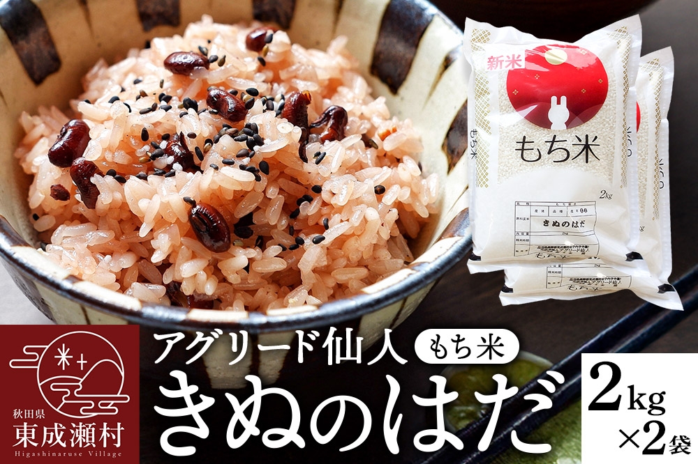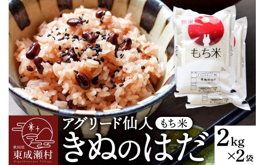 秋田県東成瀬村産 もち米(きぬのはだ )2kg×2袋 餅米
