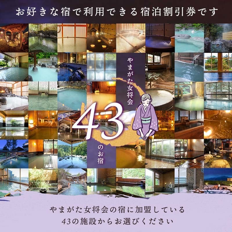 ◆「やまがた女将会」加盟の温泉施設でご利用いただける宿泊補助券です。
