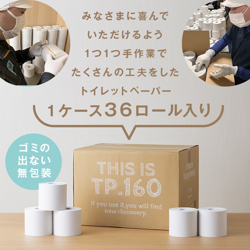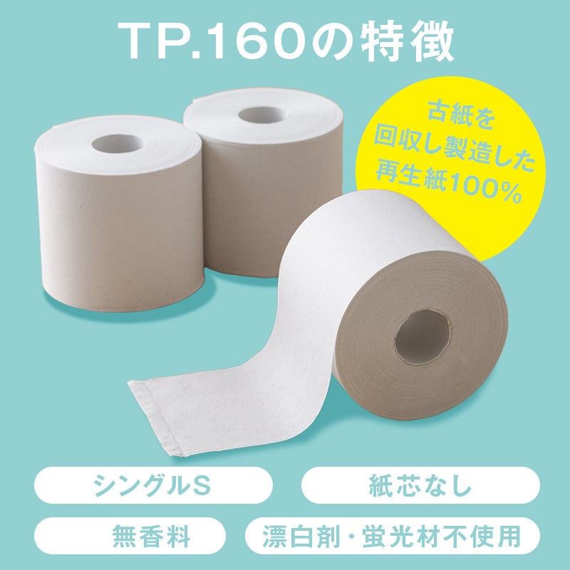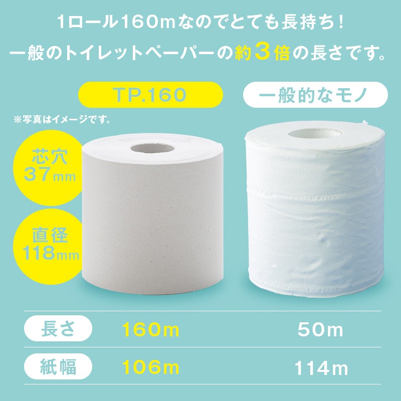 無地・無香料・無包装・芯なしなのでゴミの削減と 1 ロール160mもあり交換の手間も少なくなります。