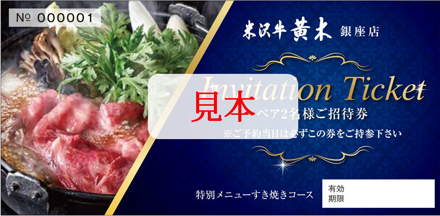 【銀座・米沢牛黄木】お食事ペア招待券 F2Y-593580,000 円 銀座四丁目の米沢牛レストランに、大切な方と共に。 - 別送