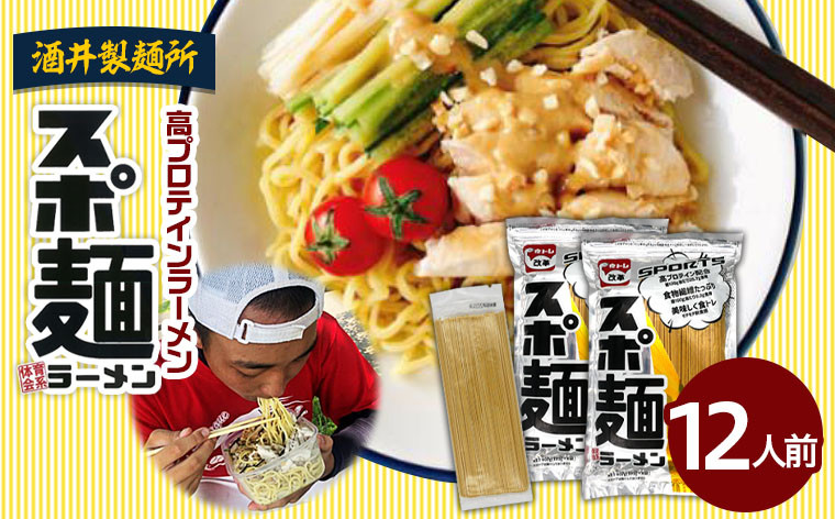【 酒井製麺所】食トレ改革!体育会系ラーメン!中高校生アスリートのお子様にも! 【酒井製麺所】高プロテインラーメンスポ麺 2袋セット 12人前 FZ20-794