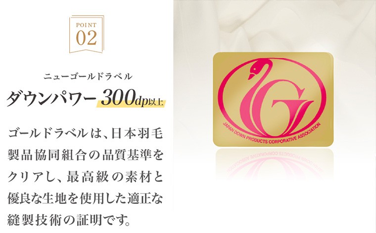 ダウンパワー300dp以上 ニューゴールドラベル取得の羽毛を使用した羽毛布団。