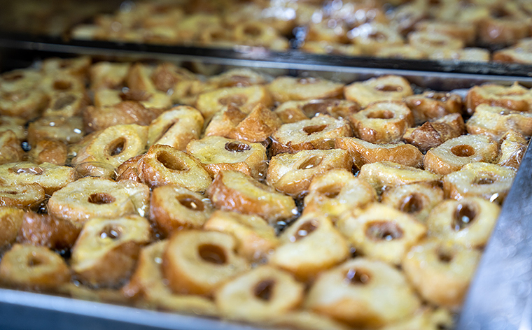 当社の車麸の生地は大変粘りが強いため、熟練した職人の確かな技によって、栄養のバランスと食感、そして美味しさが生み出されています。