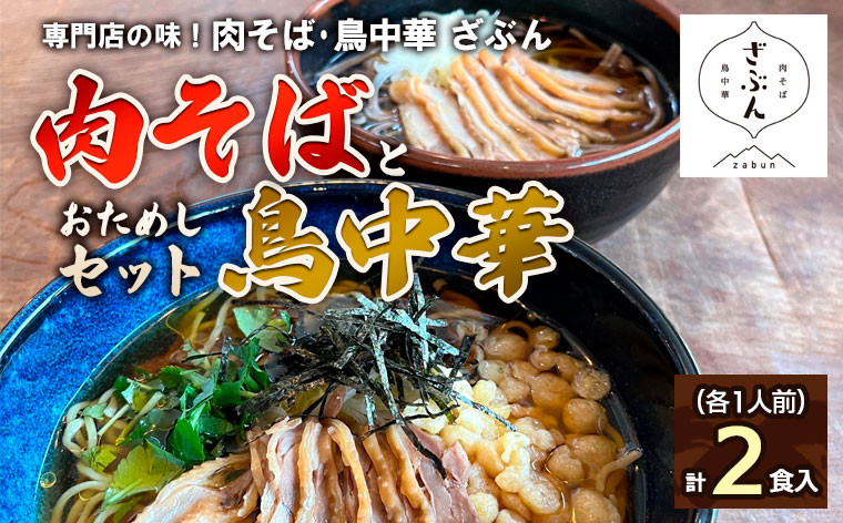 専門店の味!『肉そば・鳥中華 ざぶん』肉そばと鳥中華おためしセット(各1人前・計2食入) FZ22-536 蕎麦 ラーメン 山形県 山形市