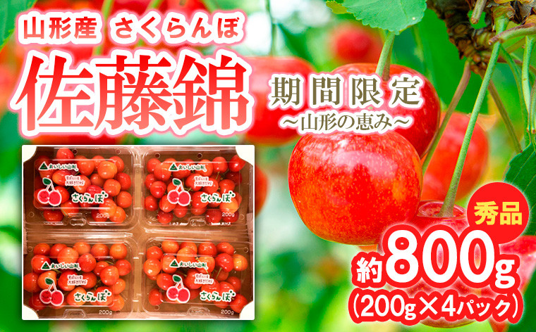 さくらんぼ【佐藤錦】約800g (200g×4パック) 期間限定~山形の恵み~ 【令和8年産先行予約】FS24-527 くだもの 果物 フルーツ 山形 山形県 山形市 2026年産