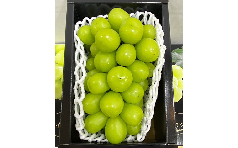 果物王国山形でさくらんぼに次ぐ人気の果物、たねなしで皮ごと食べられるシャインマスカット。