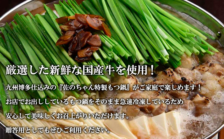 九州博多仕込みの『佐のちゃん特製もつ鍋』がご家庭でも楽しめます。