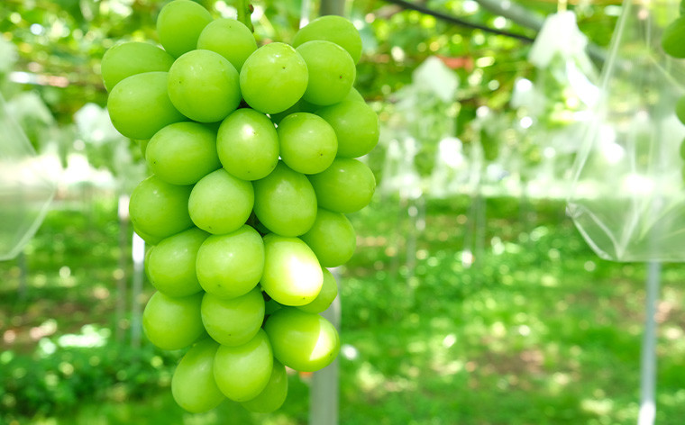 こんのぶどう園で作るシャインマスカットは、あと味の残る甘さが特徴で、皮はパリッとシャキシャキ。