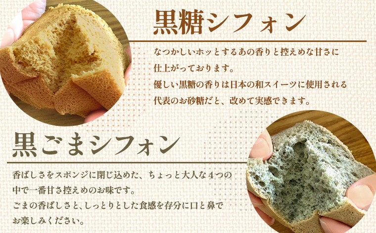 茶蔵で人気のふわふわふかふかのシフォンケーキを4種食べ比べできる詰合せセットです。