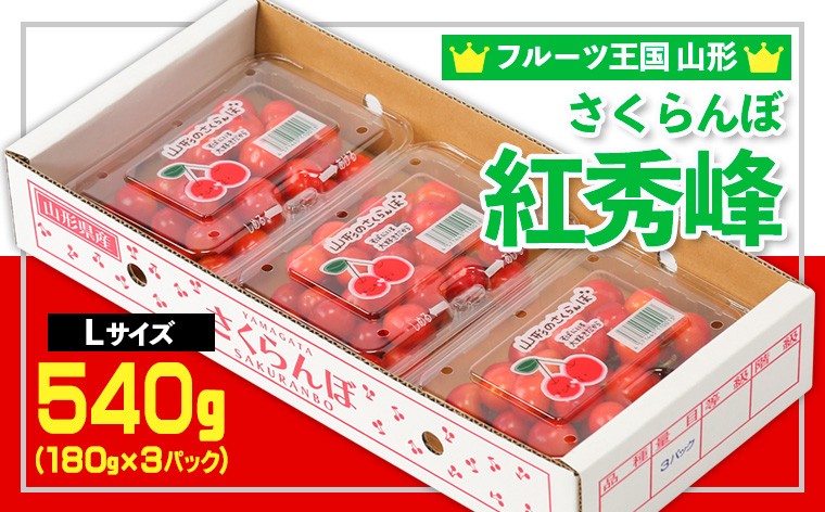 ☆フルーツ王国山形☆さくらんぼ 紅秀峰 Lサイズ 540g(180g×3P) 【令和8年産先行予約】FS25-004