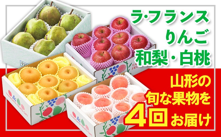 【定期便4回】☆フルーツ王国山形☆『ラ・フランス、りんご、和梨、白桃』 FY25-319