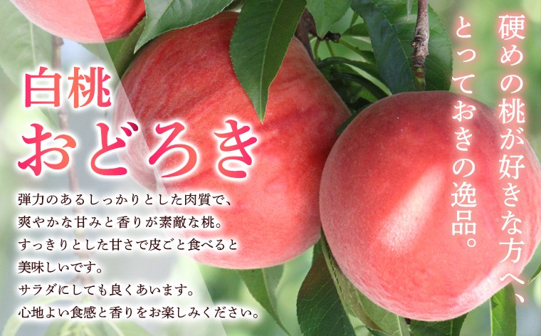 硬めの桃が好きな方にはとっておきの逸品、白桃おどろきです。