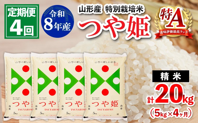 【定期便4回】令和8年産 山形産 特別栽培米 つや姫 5kg×4ヶ月(計20kg) FY26-028
