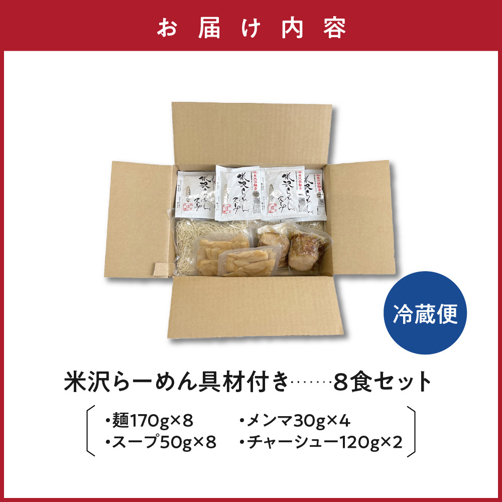 米沢らーめんセット 8食分 ラーメン 具材付き【生麵 スープ チャーシュー メンマ 付き】醤油ラーメン 中華そば 8人前 細麺 ちぢれ麺 しょうゆ おすすめ 山形 らーめん 本場の味 ご当地 お取り寄せ グルメ 送料無料 山形県 米沢市
