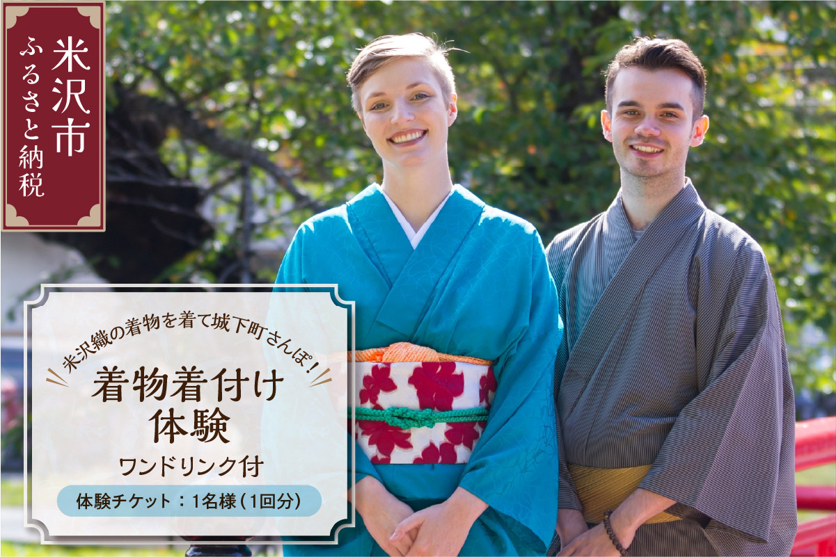 【体験】米沢織の着物を着て城下町さんぽ!着物着付け体験 (ワンドリンク付き) 1回1名様分