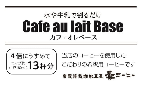 水や牛乳で割るだけでカフェオレが作れるコーヒーベースです。
