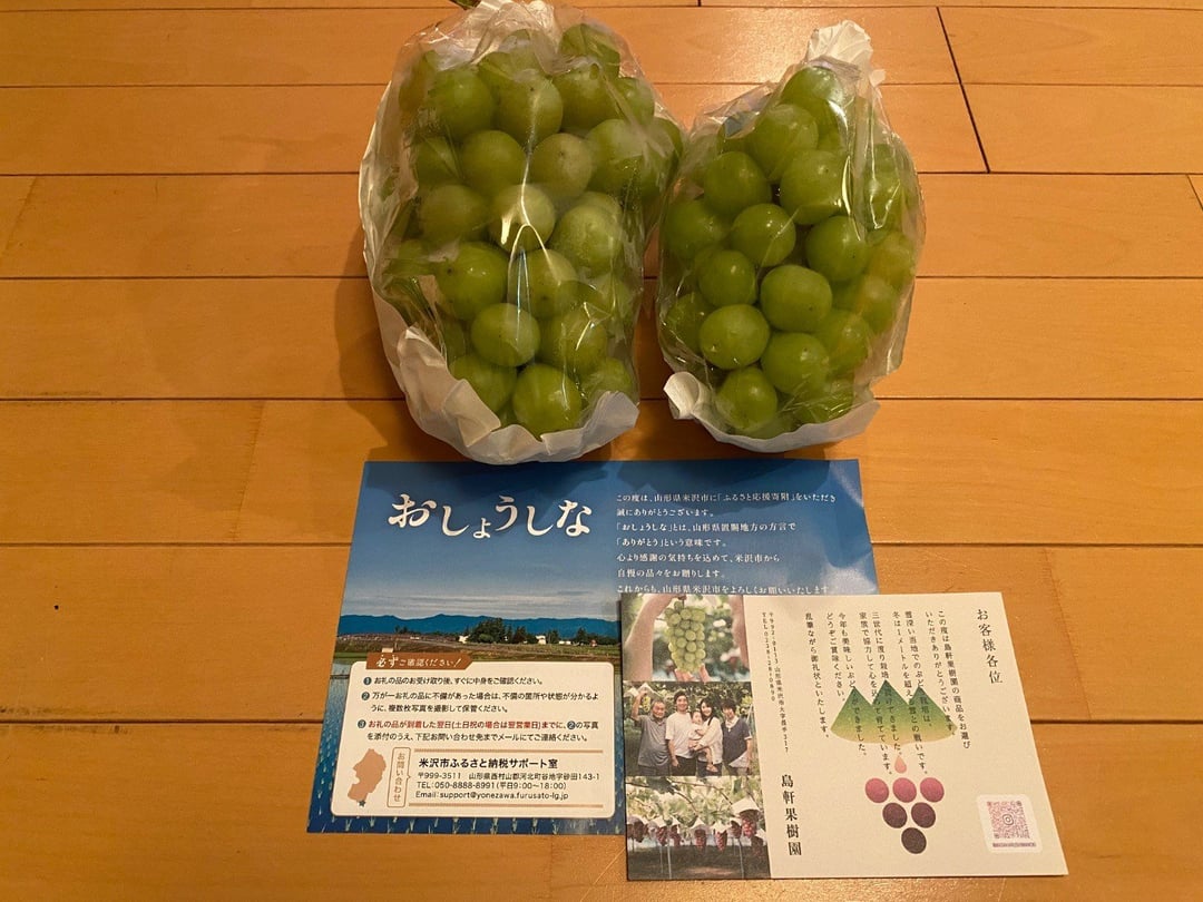 この度は山形県米沢市にご寄附を賜り誠にありがとうございます。お選びいただきました「訳ありシャインマスカット 」をおいしくお召し上がりいただけたようで大変うれしい限りでございます。