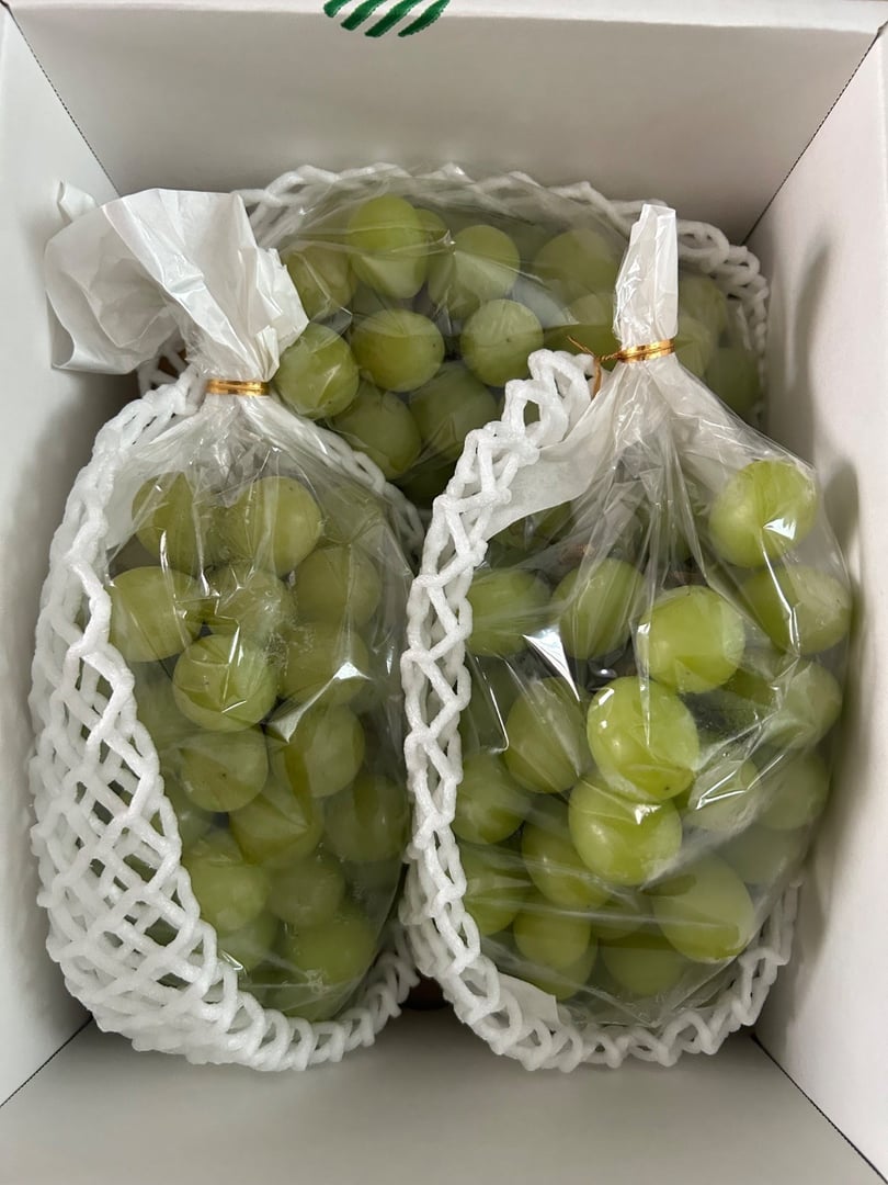 小ぶりですが、甘くてしっかり実のつまった房のシャインマスカットが3房届きました。