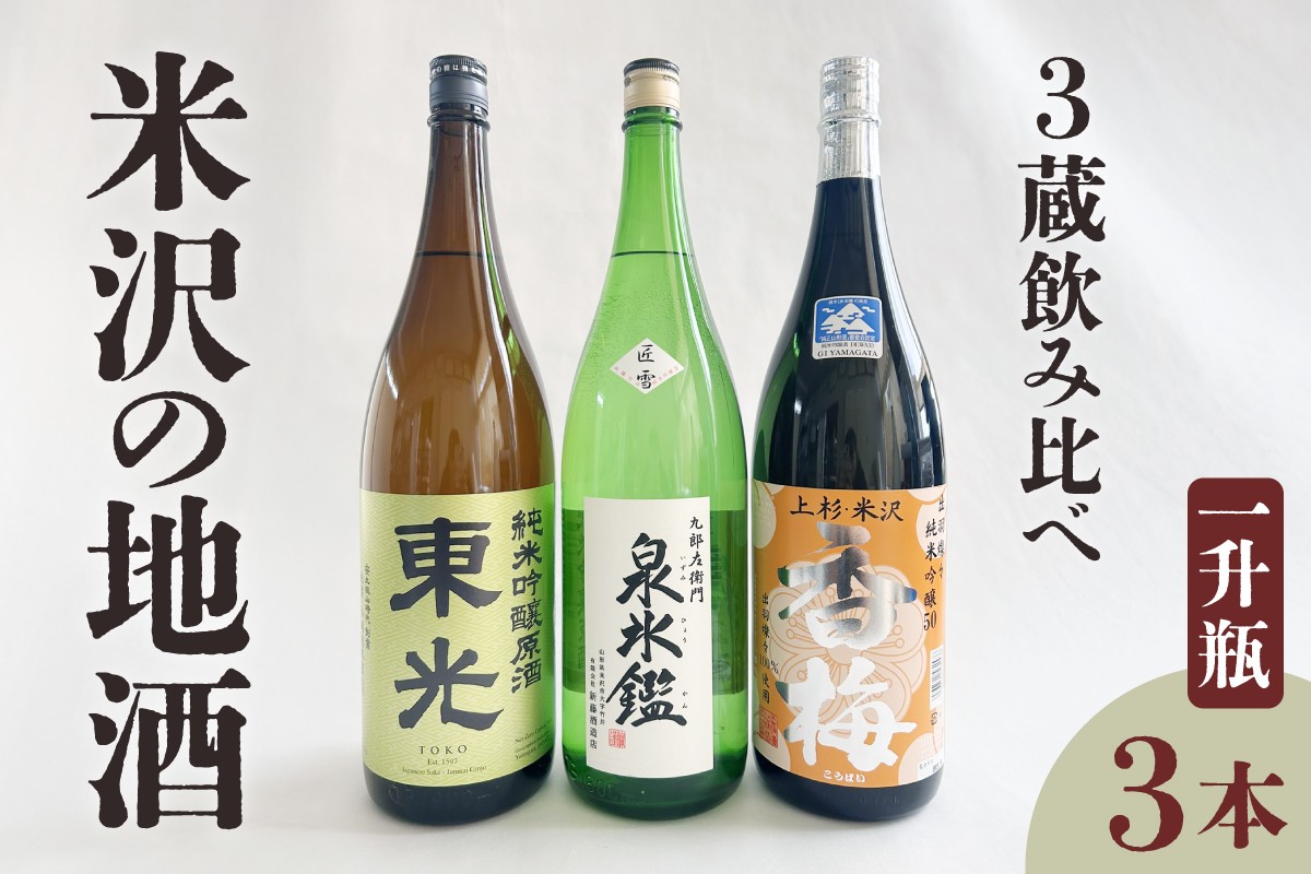米沢地酒 三蔵 一升瓶セット 3酒蔵 飲み比べ 純米吟醸 東光 純米吟醸 香梅 九郎左衛門 泉氷鑑 匠雪 1800ml 各1本 計3本 小嶋総本店 香坂酒造 進藤酒造店 日本酒 山形県 米沢市