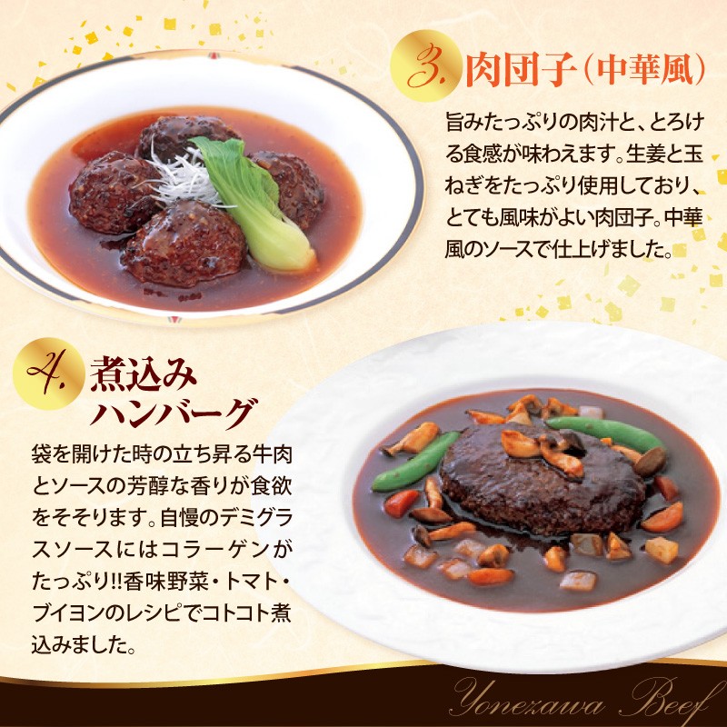米沢牛黄木 厨房料理 詰合せ セット 煮込み ハンバーグ ビーフ シチュー 中華風 肉団子 洋風 肉団子 湯煎 温めるだけ 山形県 米沢市