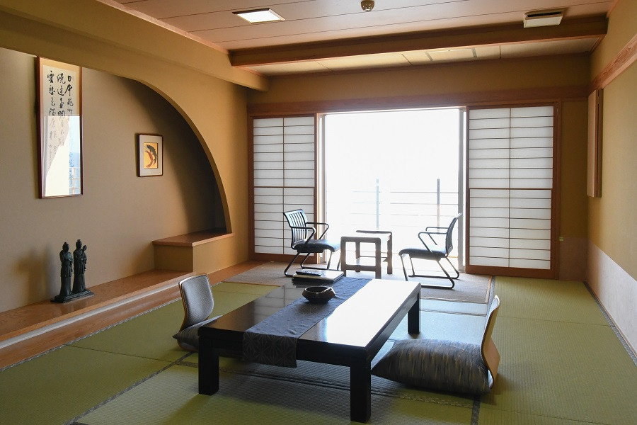 お食事処は海に面し、晴れた日には夕陽を臨みながら