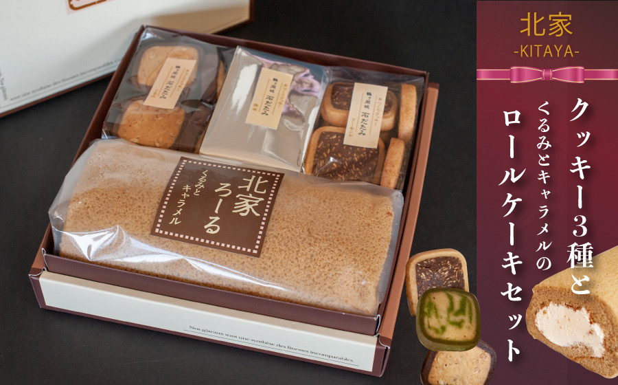 | 容量 | ・鶴ヶ岡城いしだたみクッキー3種 各110g ・くるみとキャラメルのロールケーキ 400g 提供事業者:㈱佐徳 |
