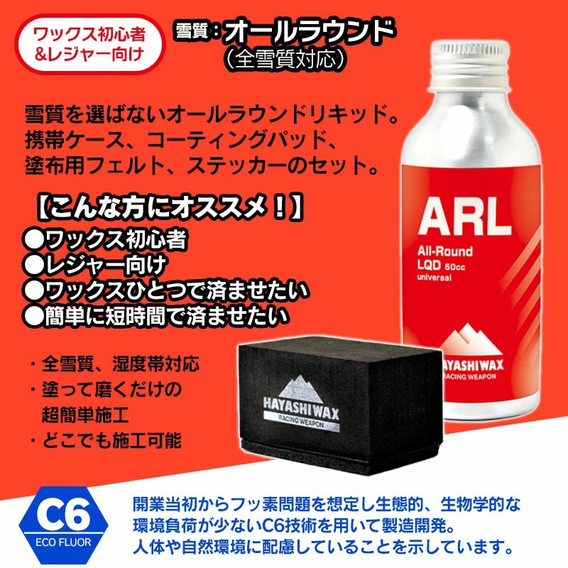 チョイスPayポイントと交換できる品 アスリート愛用ハヤシワックスから初心者&レジャー向けワックス! ハヤシワックス ALL-Round LIQUID オールラウンドリキッド[ARL・コーティングパッド・塗布用フェルト・ステッカー]セット 全雪質・湿度帯対応 スキー・スノーボード