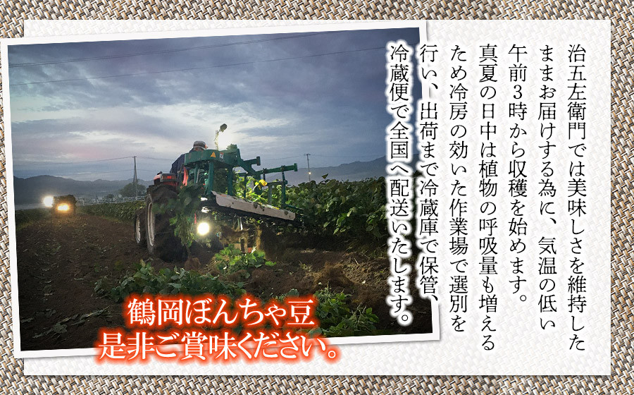 チョイスPayポイントと交換できる品 発送時期:7月中~下旬頃発送予定 【令和8年産先行予約】 山形セレクション認定!15代目「治五左衛門」の新枝豆「つるおか・ぼんちゃ豆」1.35kg(450g×3袋) 7月中旬~下旬
